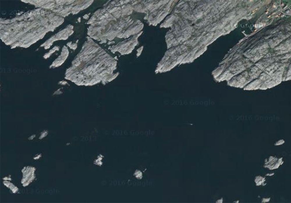 Dykningen sker en bit ifrån själva hamninloppet men trots det kan båttrafiken vara livlig under sommaren. Enklaste är att gå i vid stenarna mellan själva piren och träterassen. Om man vill kan man även hoppa i direkt från piren. Därefter är det smidigast att simma ut till första udden och gå ner och här möts man av en vägg som sträcker sig lite drygt 15m och fortsätter därefter med klippblock och stenrösen. Bottnen är ganska stening och fast till skillnad mot längre ut i fjorden och sträcker sig ut till ca 30m djup.