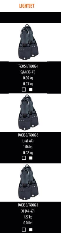 - Kombination av fördelarna med tekniska (JET) fenor med lätthet i fritidsfenor