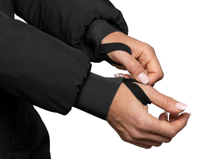 Sorona®. Andas lätt och vattentåligt material som håller värmen. Den komprimerade stoppning har också fördelen med mindre volym.